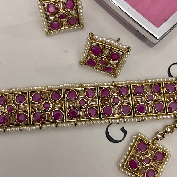 Polki choker with studs and a tikka
