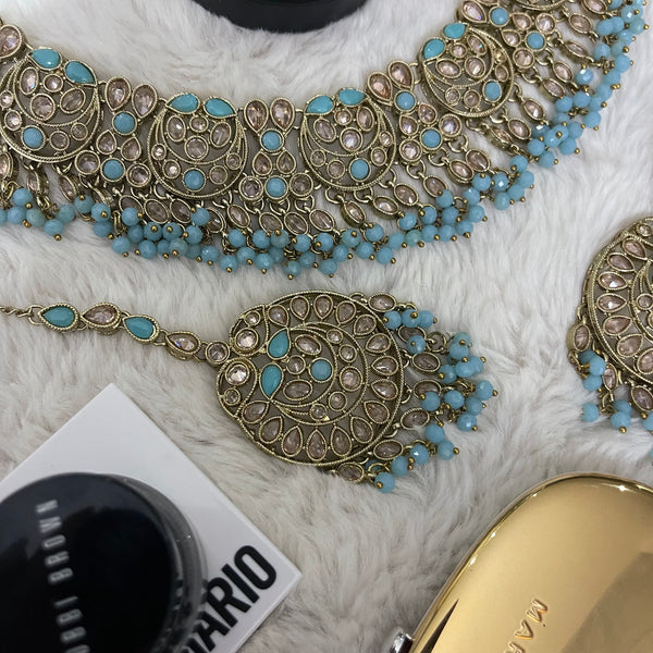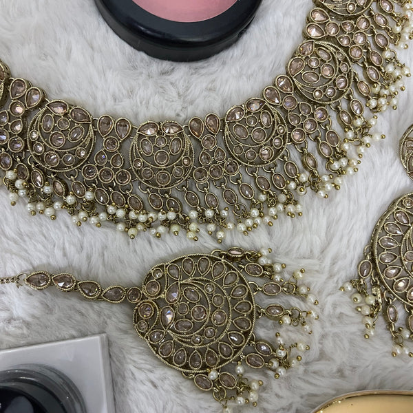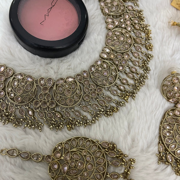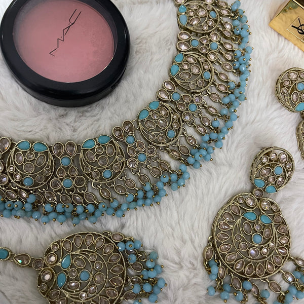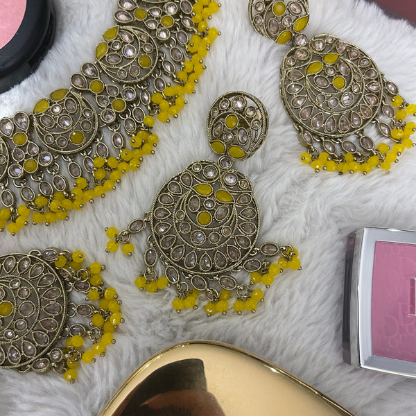 Polki necklace set with earrings and tikka